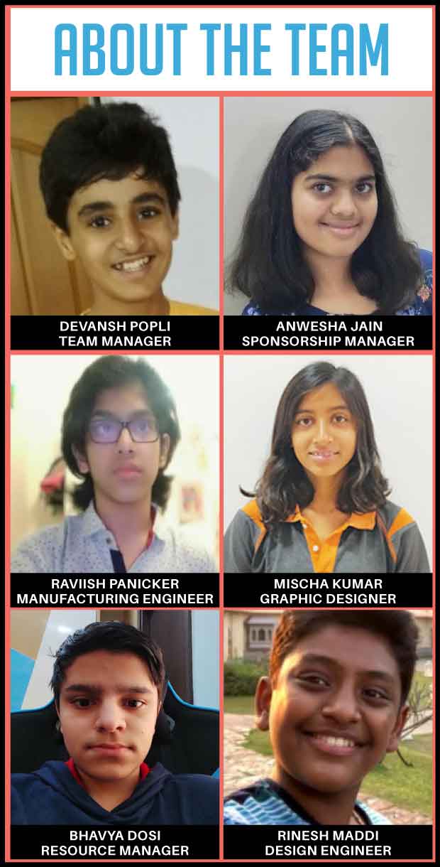 Godspeed is a team of six eighth and ninth graders from Oakridge International School- Bhavya, Devansh, Ravish, Anwesha, Rinesh, and Mischa. We have participated in the regionals and nationals and now, we are one of the few teams that have been invited for the F1 in Schools Open Nationals of 2020-21. Our team has been working together efficiently for more than two years now and we have come far by learning to use our strengths to our advantage and covering for each other’s weaknesses. We believe in accelerators, not brakes.