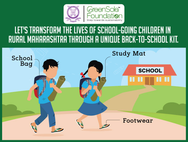 The back-to-school kit costs just INR 950 and gives students a pair of recycled footwear, a recycled study mat to sit comfortably at school or home, and a recycled school bag for books. This is a very small amount to impact a student. Fund INR 4750 for example, and transform the lives of 5 students.