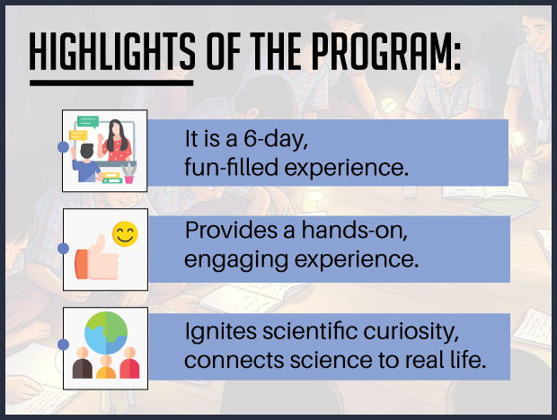 THE COST FOR ONE CHILD FOR THE ENTIRE 6-DAY SUMMER SCIENCE CAMP IS JUST INR 1000.
