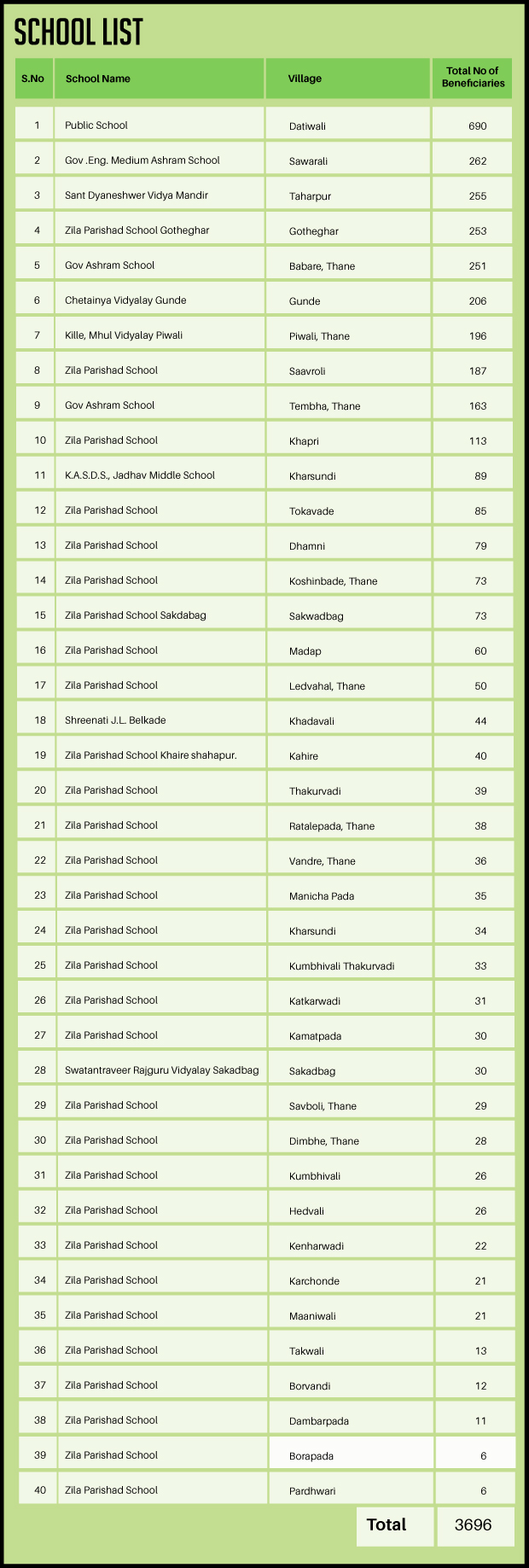 BENEFICIARY INFO : FIRST LIST OF SCHOOLS IN MAHARASHTRA THAT WILL BENEFIT