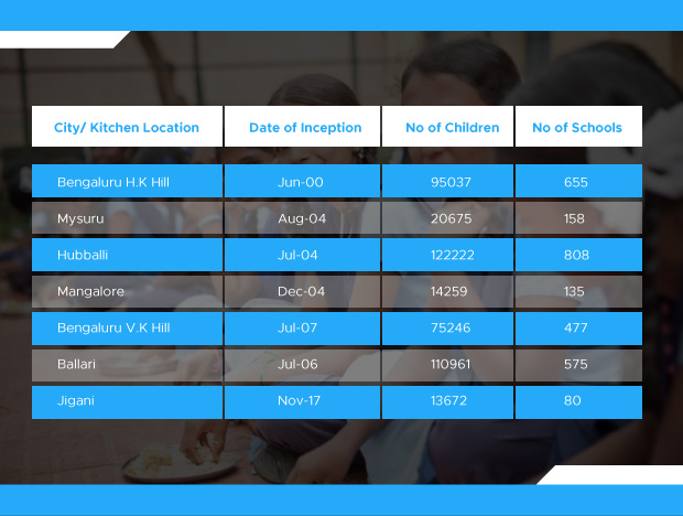 Under this program, government schools around these kitchens would be benefitted. This will impact children studying at schools in and around Bangalore.