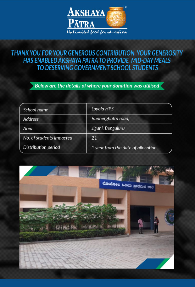 The Mid-day meal will be distributed to 452072 children in 2885 schools across 7 locations in Karnataka. We can provide mid-day meals for more students if we raise more funds. This will help bring more smiles and cheers to students and help us achieve the Foundation’s Vision that ‘’No child in India shall be deprived of Education, because of Hunger’’.