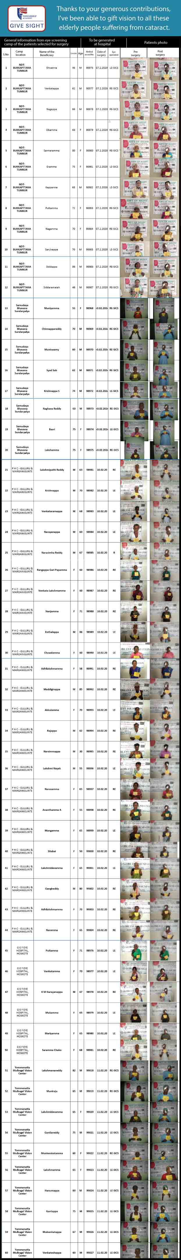 The money raised will be given to our partners - Rotary Bangalore Indiranagar & they will pay the amounts to the NGO – Globe Eye Foundation. Once the money is given, the Globe Eye Foundation will use it to do cataract surgeries for the elderly poor in villages in the Hoskote, Kolar & Chintamani area and share the details with me. I shall then post an update giving you details of the elderly whose eyesight has been corrected so that you know where your money has gone.