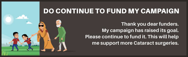 I strongly believe that we can help those who are needy and in the process, transform their lives. Please support my campaign and let us together bring light into the lives of these people. Keep funding this till the last date. While my goal is INR 20000, I would like to raise much more than that and help more elderly people see again.