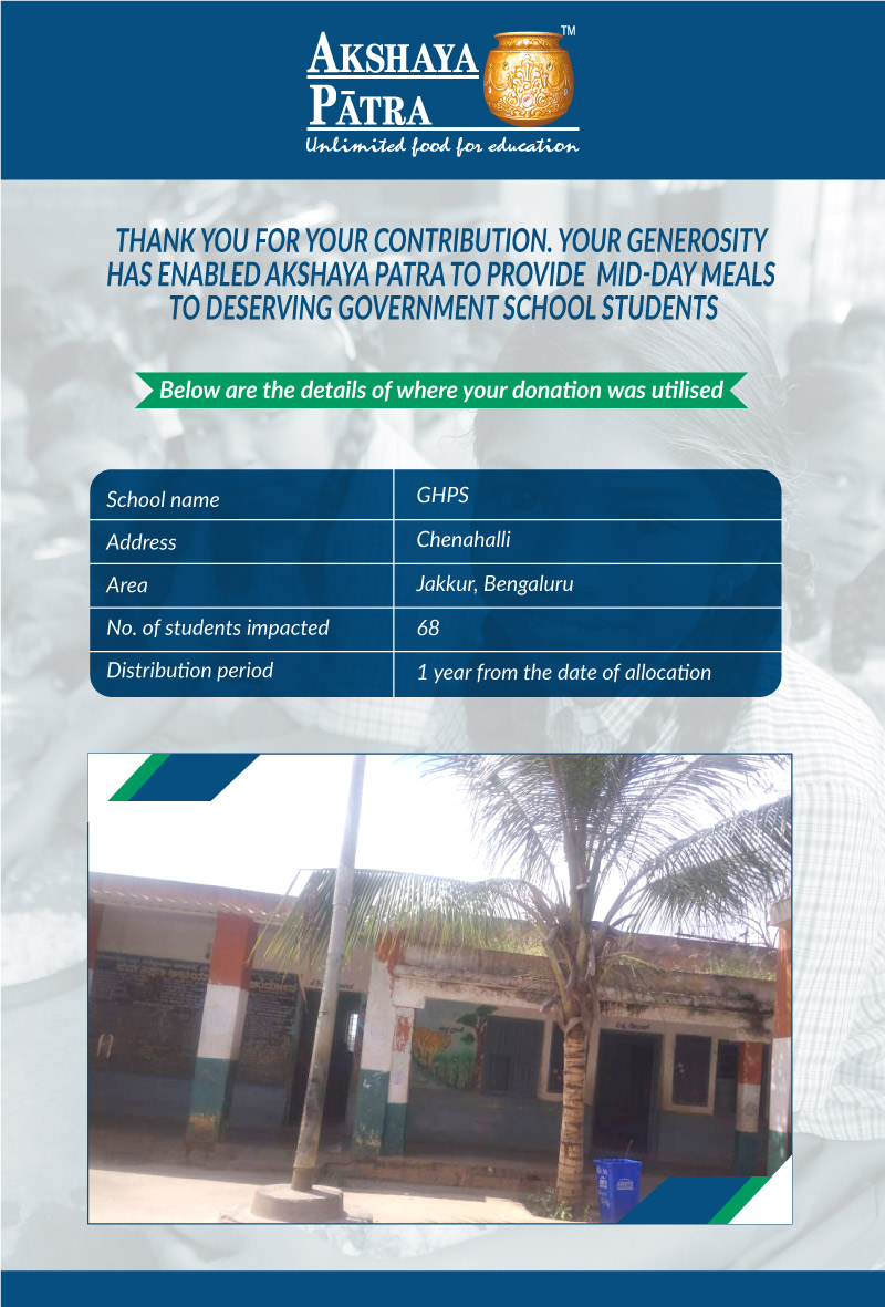 To ensure that there is complete transparency I shall get a report from NGO (this takes between 2 to 4 months usually after the funds are raised & transferred to them) telling me who benefitted from the funding. The details will then be posted from Akshaya Patra on the UPDATES section of my campaign. As soon as I post an update, the platform will send an SMS and EMAIL alert to all the funders - i.e. to you. Click on the link on the email and you can read about who benefitted. That's transparent right.