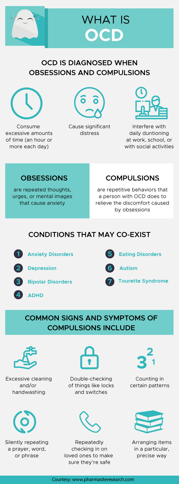 Obsessions are persistent, uncontrollable thoughts, impulses, or images that are intrusive, unwanted and disturbing. They cause anxiety or discomfort that significantly interferes with normal life. A person who doesn’t have OCD is able to filter out recurring thoughts about germs, for example. But people with OCD who are obsessed with germs can’t stop thinking about being contaminated and may even avoid going into public places. Individuals who have OCD feel compelled to perform repetitive actions called compulsions, or rituals, in an attempt to relieve the distress caused by the obsessions.