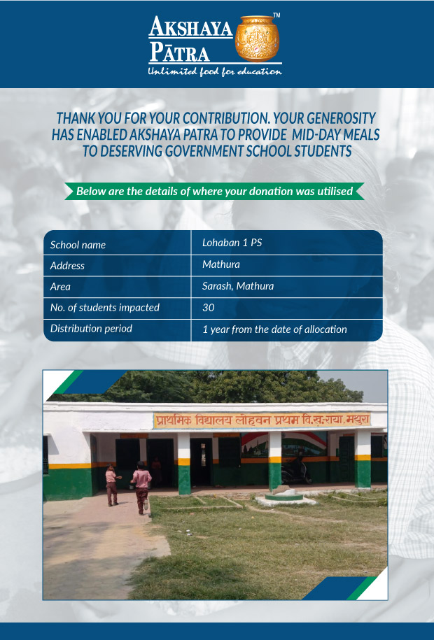 I am doing this campaign to raise awareness and funds for the Akshaya Patra Foundation. Funds raised would be used to provide wholesome school lunch to students studying at government schools across Delhi and UP under the Mid-day meal program.