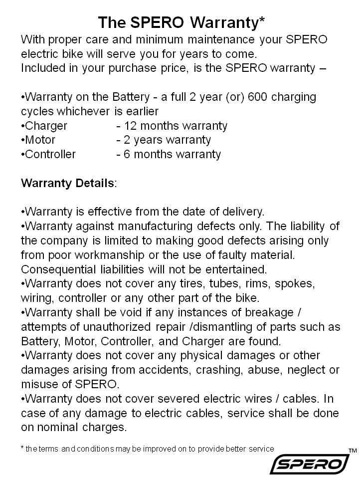 - Ease of use: Standard bicycle parts (Tyres, cables, mud/rear guards) can be used on the SPERO