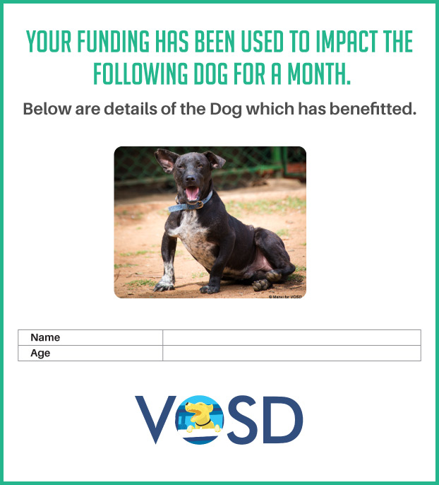 The monies collected will be given to VOSD once the campaign ends. Since they are an NGO, any donation will be eligible for an 80G tax receipt. The money would be utilized to take care of the expenses of dogs at VOSD Sanctuary.