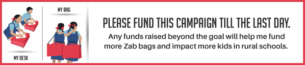 I have undertaken this campaign because I think quality and access to education is the major concern in rural schools as there is lack of proper textbooks and learning material in the schools. Students in rural areas lack access to basic educational infrastructure, as basic as a desk & bag. Most of the students in rural schools of India sit down on the floor for long studying hours. 9 in 10 people face posture-related problems and back injuries at some point of time in their life. Sitting on the floor and studying for 6-8 hours affects posture, resulting in back pain, poor eyesight, inefficiency to concentrate and study. The fact that raising 20000 INR can give ZAB(DESK+SCHOOL BAG) and transform the lives of 50 children is something that I am very excited about.