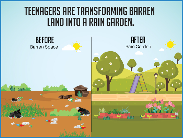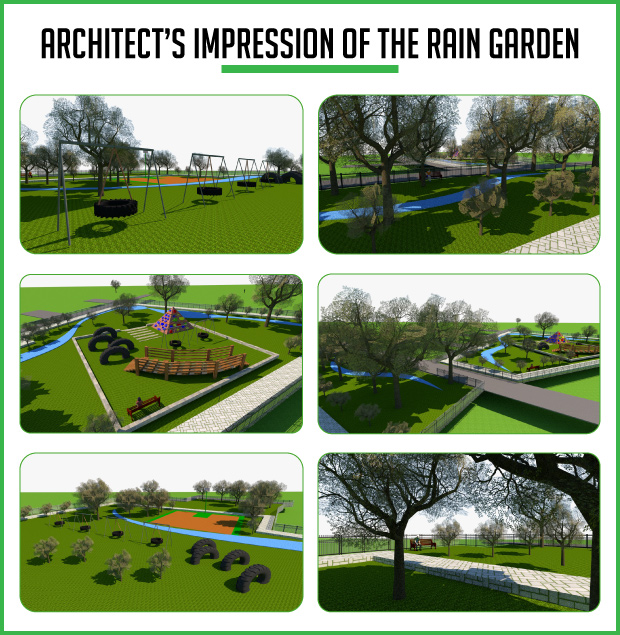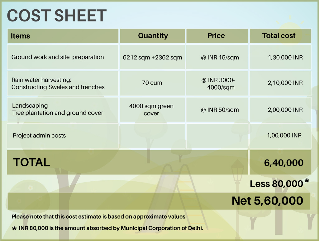 The funds will be used to convert the adjoining barren grounds to rain gardens. It measures approximately 2 acres. The park will be developed and used for multi-purpose functions of rainwater harvesting, recreational space and as a much needed green lung for the community. We hope that this project will help in creating a sustainable community by making them water positive in time with the park recharging groundwater below and the green lung above abate pollution and climate change. We also plan to create a recreational corner for children made from recycled goods.
