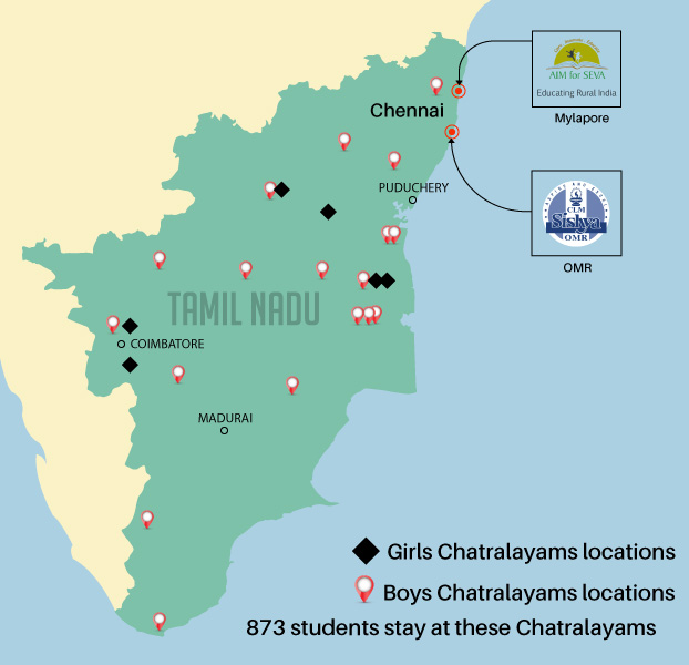 AIM for Seva is a registered pan-Indian trust based out of Chennai. They have 97 Chatralayam across 16 states in India. In Tamil Nadu, they have a total of 24 Chatralayams (of which 18 are for boys and 6 are for girls). These 24 Chatralayams house 873 needy students from different villages and tribal settlements across Tamil Nadu. Please fund this campaign and let us, together, transform the lives of children in rural India. Since AIM for Seva is an NGO, all funding are eligible for 80G tax benefits.