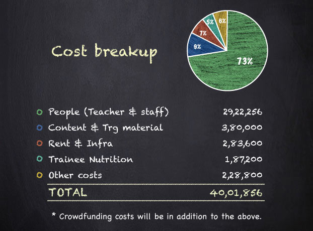 Given below are cost estimates for the first 24 months of the initiative amounting to INR 40L (approx). Through this crowdfunding initiative, we hope to raise close to INR 30L with 300 plus teachers raising INR 10,000 each. We would be thrilled if the number exceeds INR 40 L.