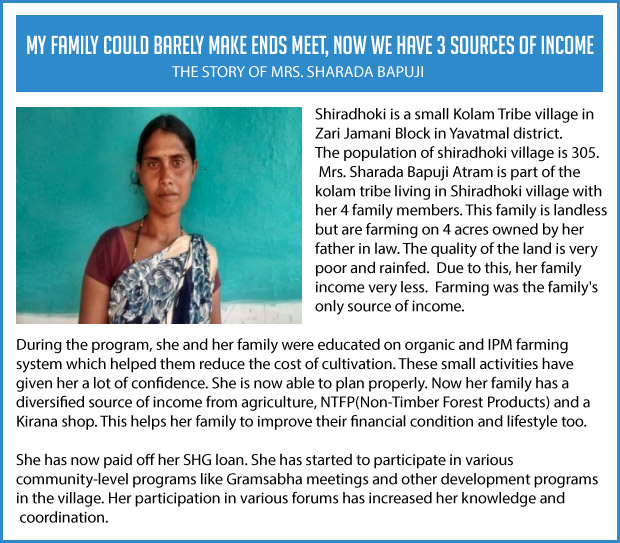 This is done at the village level and takes 3-years typically. It results in the GDP of a village going up by 3-5 times. This means the tribal families there suddenly see more income and this moves them out from poverty to prosperity. The aim is to accelerate their Self Government process for their sustainable livelihood and ecological security through the management of natural resources in 25 tribal Gram Panchayats of Yavatmal district of Maharashtra.