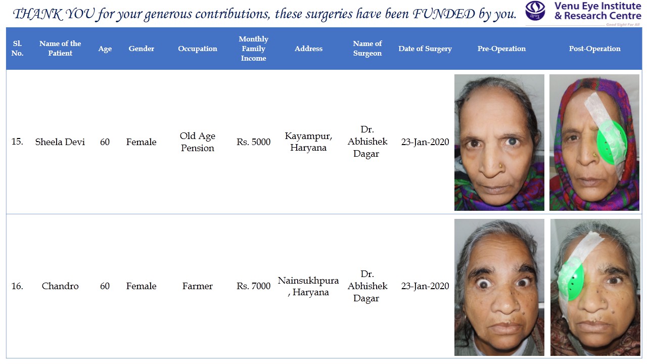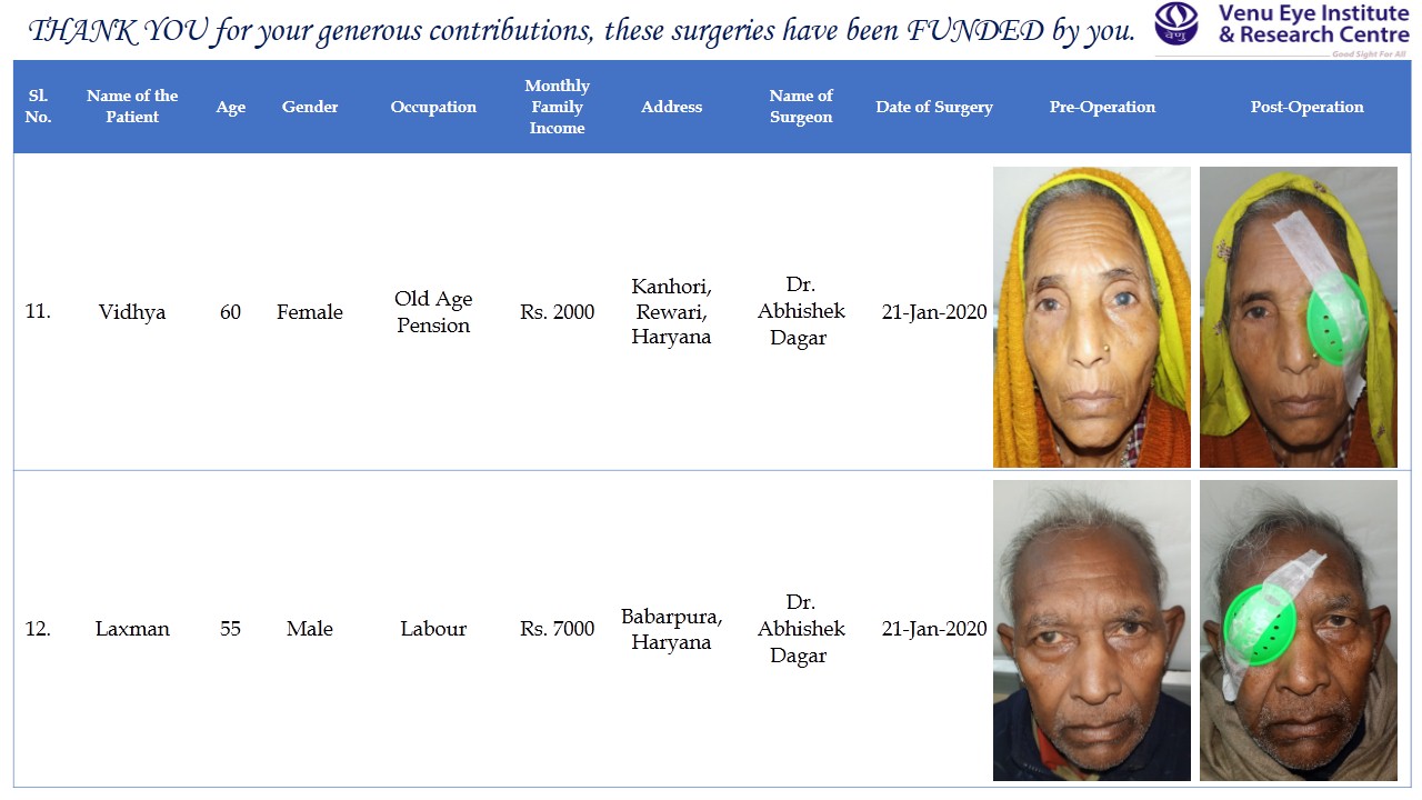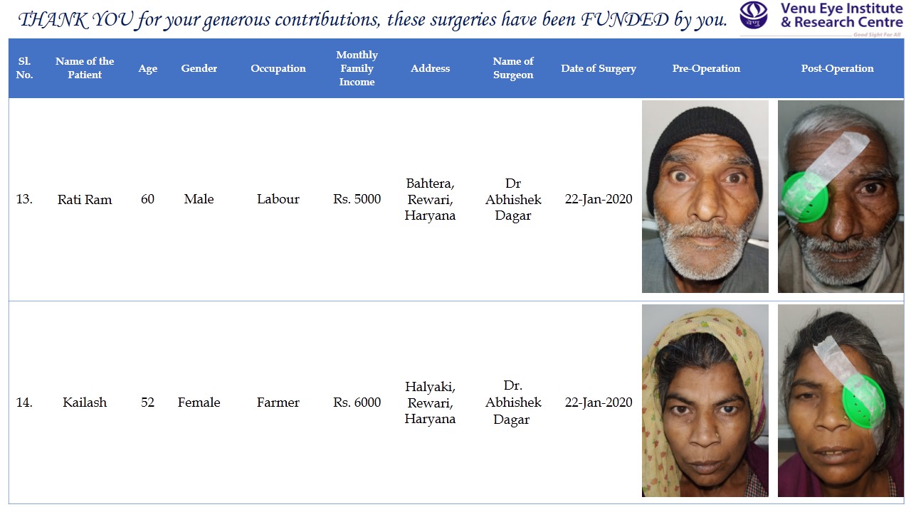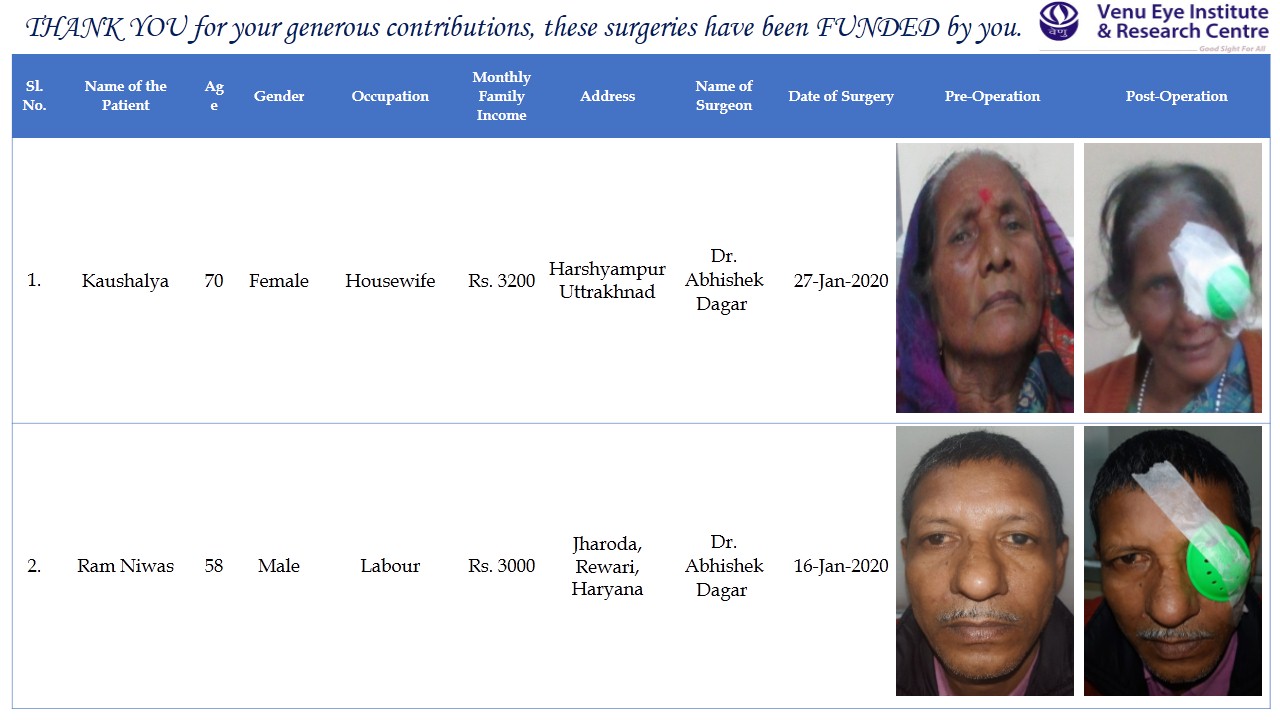The money raised will be given to our partners Venu Eye Institute. Once the money is given, Venu Eye Institute will use it to do cataract surgeries for the elderly poor in villages and rural areas of Delhi & NCR area and share the details with me. I shall then post an update giving you details of the elderly whose eyesight has been corrected so that you know where your money has gone.