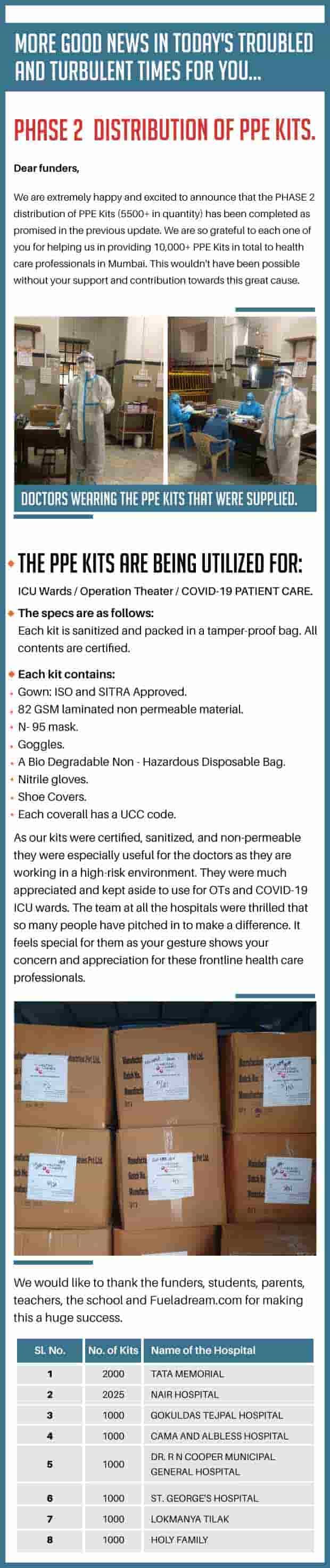 The funds raised will help healthcare workers at TATA MEMORIAL, NAIR HOSPITAL, GOKULDAS TEJPAL HOSPITAL, CAMA AND ALBLESS HOSPITAL, DR. R N COOPER MUNICIPAL GENERAL HOSPITAL, ST. GEORGE'S HOSPITAL and LOKMANYA TILAK (SION) HOSPITAL. (Scroll down the story to see the appeal letters and requirements from these hospitals)
