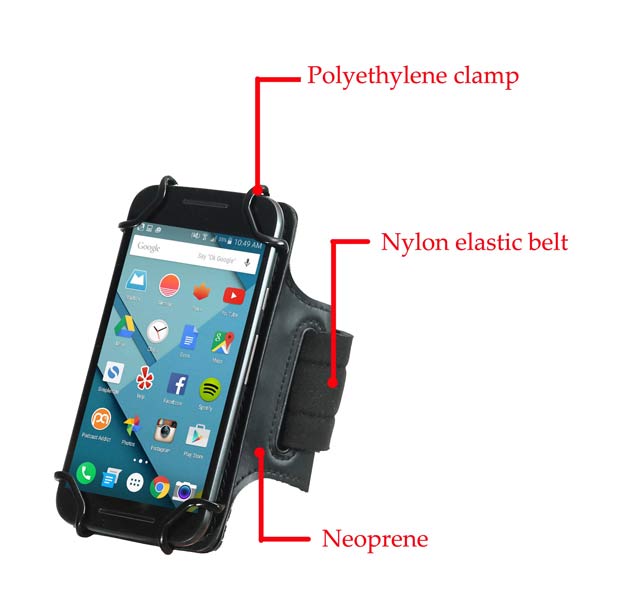The ExoBand can hold phone size from 4.3 inches to 6 inches and also gives you a direct access to touch screen controls.