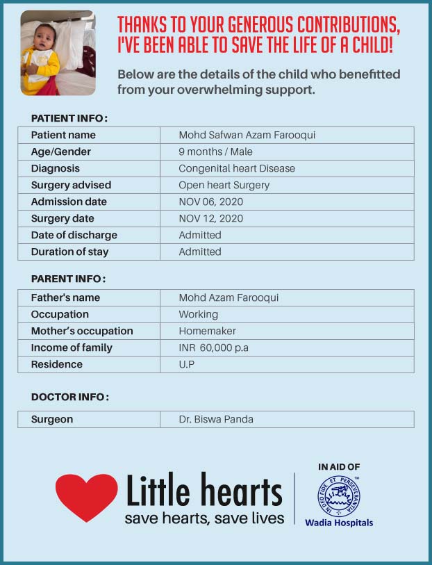 But here I am now doing exactly that and all I request you to do is fund a small amount and lets together make a difference. The fact that heart surgery can be done at such a low cost is another reason why I decided to do this campaign. I have undertaken this campaign because I don’t think children belong in hospitals. Doing this ensures that one more child gets a chance to go out and play rather than suffer at home. Further, I believe that healthcare is a basic necessity that should be available to everyone irrespective of their financial condition. Please also do spread the word on social media so that all those who believe in making this world a better place can chip in.