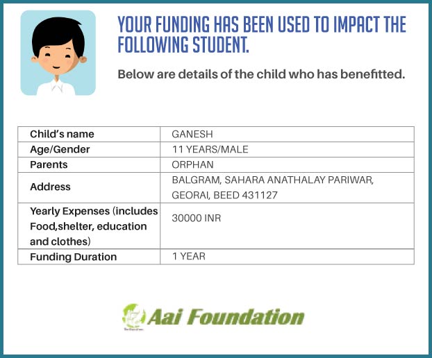 To ensure that there is complete transparency I shall get a report from Balgram (this takes between 1 to 3 months usually after the funds are raised & transferred to them) telling me who benefitted from the funding. The details will then be posted on the UPDATES section of my campaign and will be in a format like the one below. As soon as I post an update, the platform will send an EMAIL alert to all the funders - i.e. to you. Click on the link on the email and you can read about which child benefitted. That's transparent right.