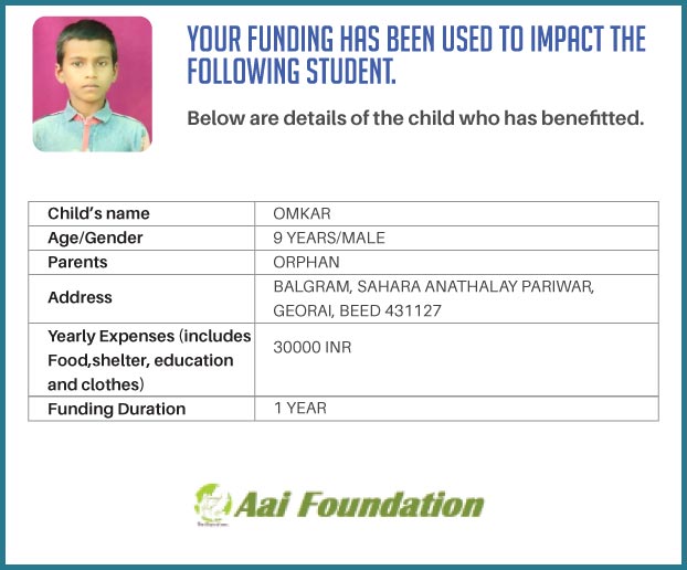 To ensure that there is complete transparency I shall get a report from Balgram (this takes between 1 to 3 months usually after the funds are raised & transferred to them) telling me who benefitted from the funding. The details will then be posted on the UPDATES section of my campaign and will be in a format like the one below. As soon as I post an update, the platform will send an EMAIL alert to all the funders - i.e. to you. Click on the link on the email and you can read about which child benefitted. That's transparent right.