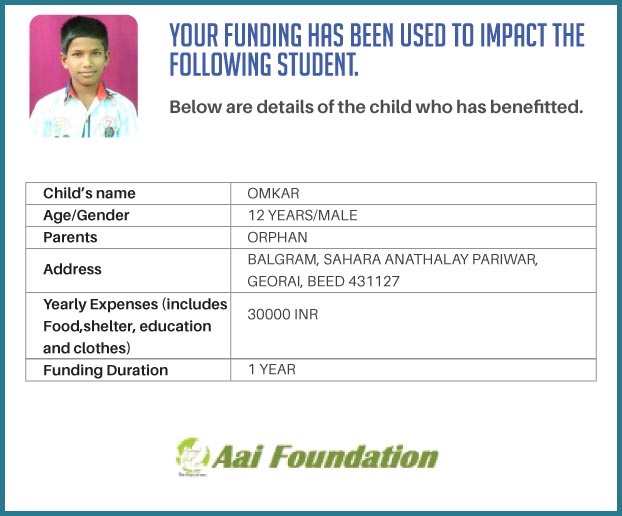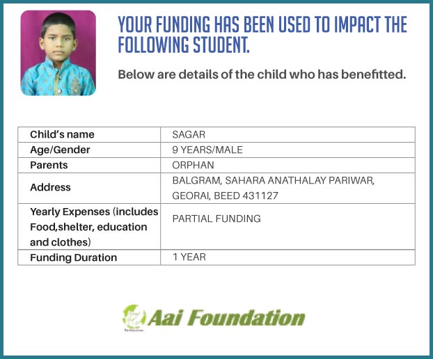 To ensure that there is complete transparency we shall get a report from Balgram (this takes between 1 to 3 months usually after the funds are raised & transferred to them) telling me who benefitted from the funding. The details will then be posted on the UPDATES section of our campaign and will be in a format like the one below. As soon as we post an update, the platform will send an EMAIL alert to all the funders - i.e. to you. Click on the link on the email and you can read about which child benefitted. That's transparent right.