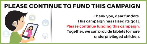 I am running this campaign to help children from low-income homes who are hearing impaired. Their impairment is not a learning disability. With the right support to develop language and communication skills early in life, these children can do as well as their peers who can hear. This campaign aims to give them a TABLET (tablet computer) that will transform their lives.