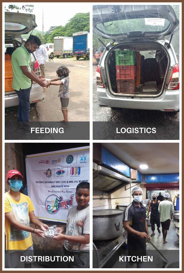 Recognizing this need, the Rotary Club of Mumbai Brave Hearts and the Rotary Club of Bombay Pier began distributing packed cooked meals to the needy. The meals are delivered directly to them. The demand for food packets is overwhelming, and it is hard to turn people away when the food packs run out. The initiative is called ANNAPOORNA and different Rotary clubs in Mumbai have together distributed more than 6.5L meals as part of this initiative.