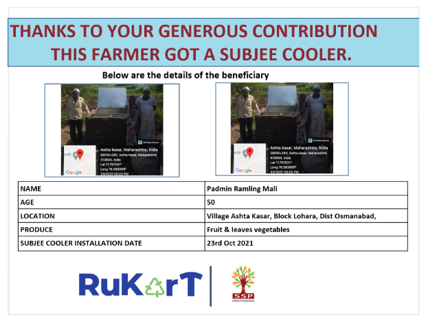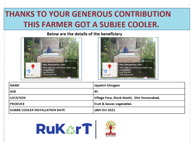 I am running a crowdfunding campaign to help small farmers across Maharashtra who grow vegetables and fruits. Most of these farmers end up selling their produce at a low price as they do not have any way to store it as these products are perishable. Through this campaign, I want to help provide a Subjee Cooler to these farmers across Maharashtra. This will help them store their produce, reduce wastage, and improve the price sell they sell it at. This dramatically improves their income and will impact the well being of their entire family.