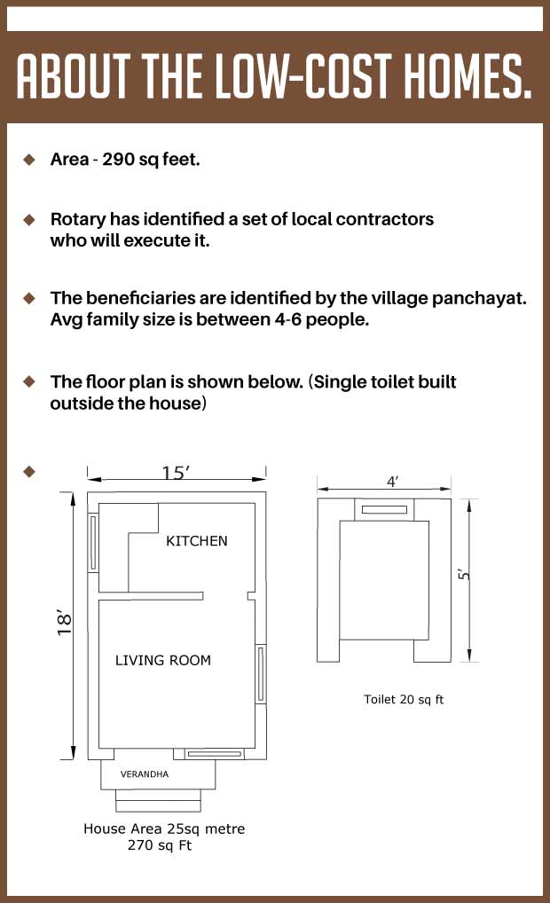 - The families will get a concrete house made of brick & mortar and a separate toilet.