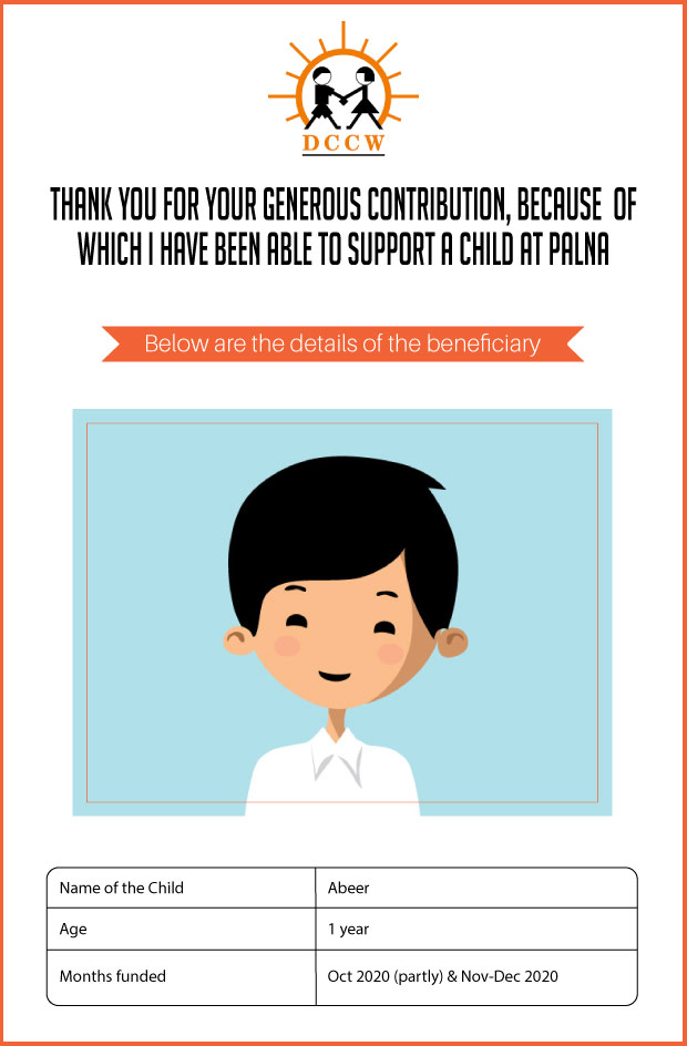 I have undertaken this campaign because I think being able to impact the lives of infants and children by funding their stay, food, education, clothes, and medical care at PALNA is incredible. PALNA (which means “cradle” as well as “nurture”) an initiative by DCCW is a home for children who are homeless and destitute.