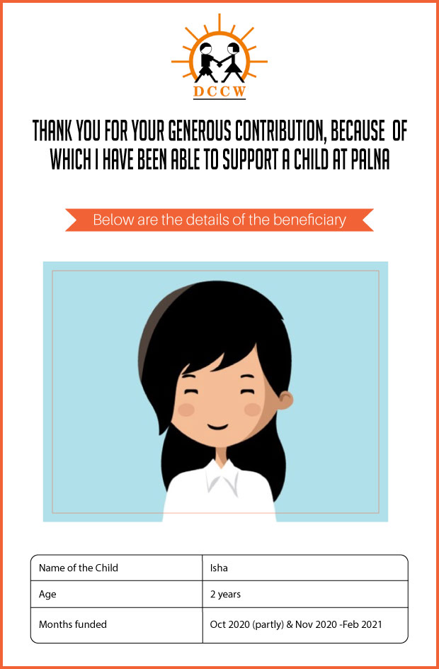 I have undertaken this campaign because I think being able to impact the lives of infants and children by funding their stay, food, education, clothes, and medical care at PALNA is incredible. PALNA (which means “cradle” as well as “nurture”) an initiative by DCCW is a home for children who are homeless and destitute.