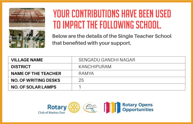 Funding for this campaign is eligible for tax breaks as ROTARY CLUB OF MADRAS EAST is a registered trust and you can avail of benefits under section 80G of the IT act. Foreign funding is accepted too.