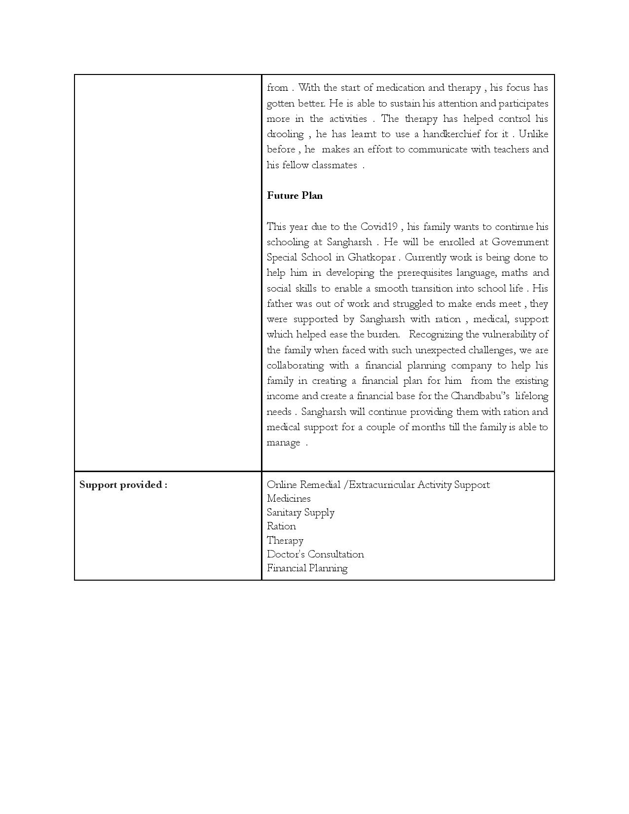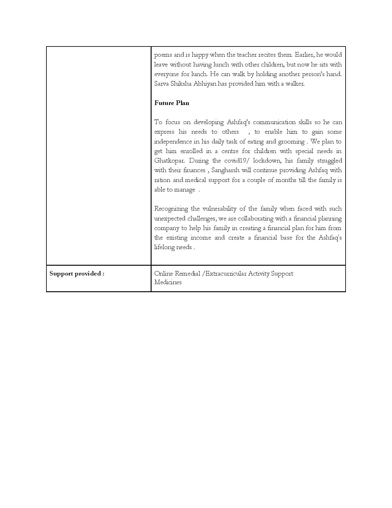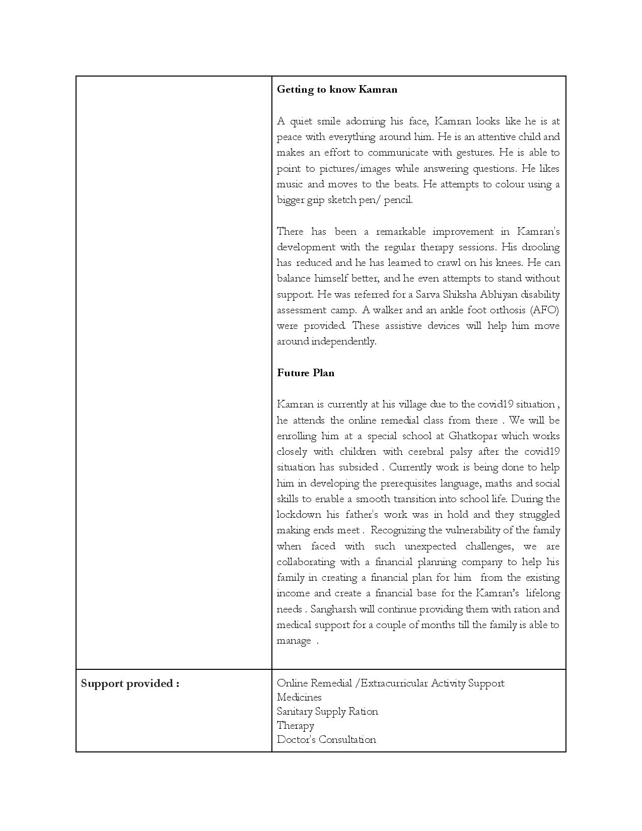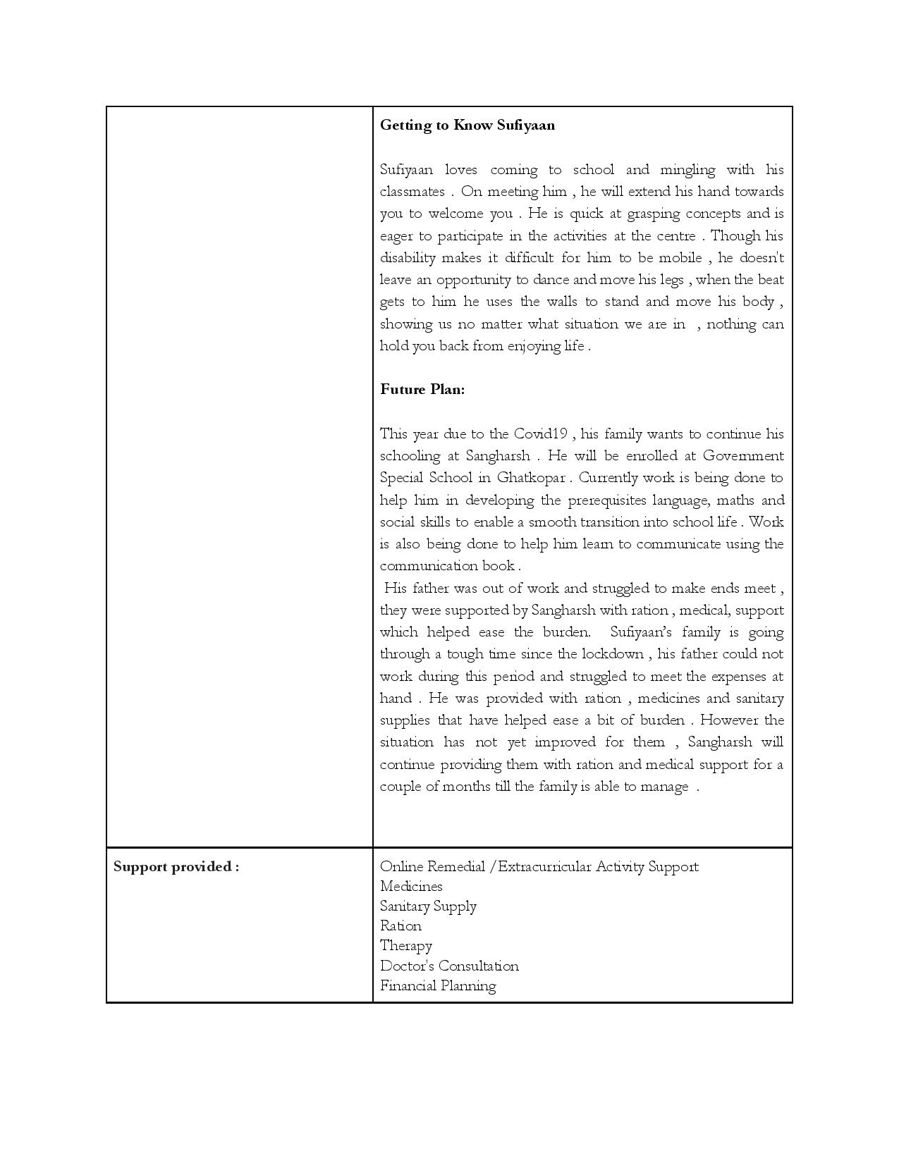 Over the last 9 years, the Sangharsh centre has established itself in the community as a safe space for children/adolescents with disabilities, attending to their educational, medical and rehabilitation needs and serving as a support system for the families of these children. It imparts daily living skills to allows them to live independent lives. Basic literacy skills enable them to function in the outside world, vocational and pre-vocational skills give them a foundation for entering apprenticeships or jobs. Sahyog Sangharsh bridges the vast gap between disabled children and the services that they need to live a fulfilled life.