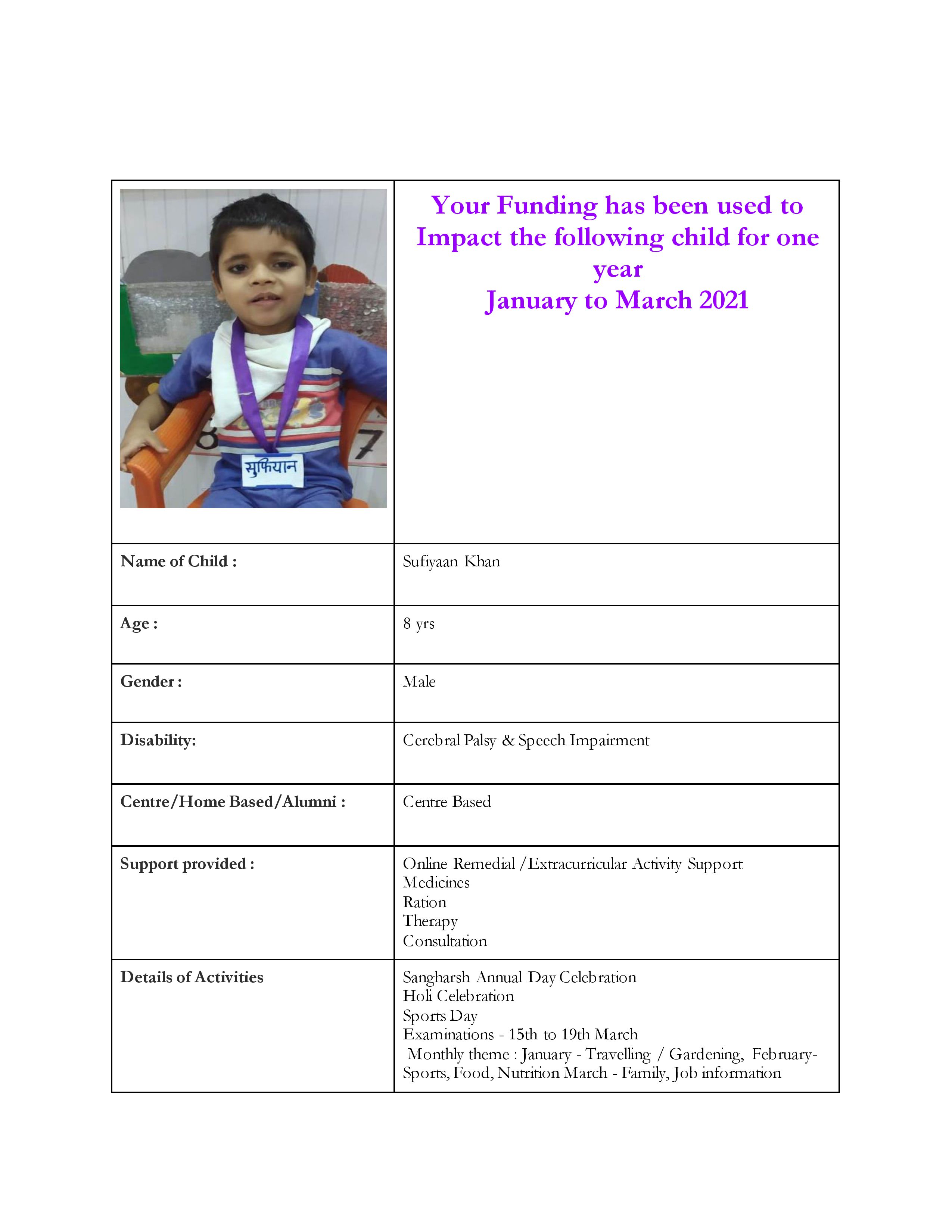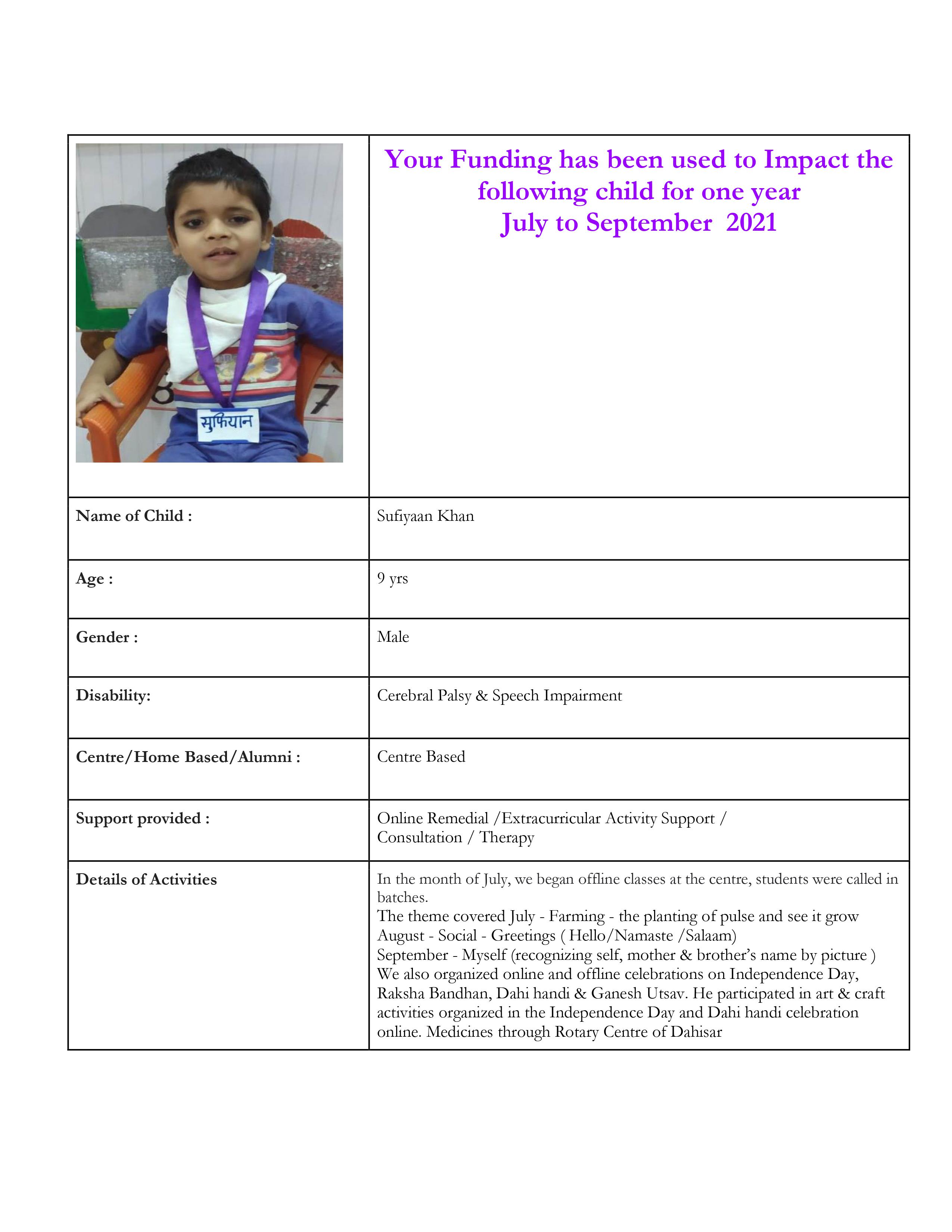 Just INR 2100 will help a differently-abled child for an entire month.