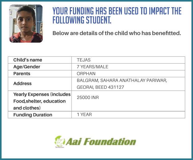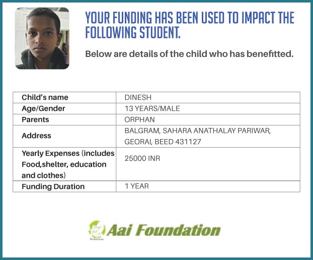 The fact that just INR 2500 per month can make a difference in the life of a fellow student who is an orphan in a rural area made me realise that I must do something about it. Please support my campaign as we can together transform the lives of at least one and possibly more orphan children in rural Maharashtra.