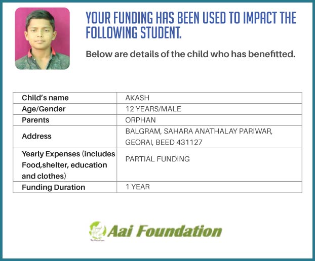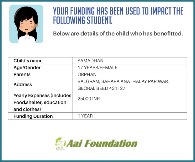 The fact that just INR 2500 per month can make a difference in the life of a fellow student who is an orphan in a rural area made me realise that I must do something about it. I would truly be honoured to be a part of this generous campaign. Kindly support my campaign as we can together modify the lives of at least one and possibly more orphan children in rural Maharashtra.