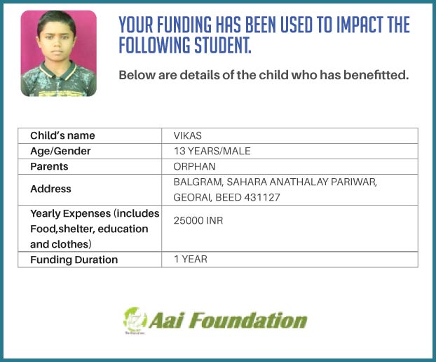 The fact that just INR 2500 per month can make a difference in the life of a fellow student who is an orphan in a rural area made me realise that I must do something about it. Please support my campaign as we can together transform the lives of at least one and possibly more orphan children in rural Maharashtra.