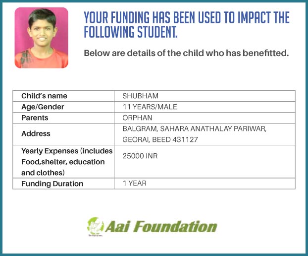 Santosh Narayan Garje, the founder of AAI foundation, born in the family of a poor sugarcane labourer in Maharashtra’s remote village Patsara located in Beed. He lost his elder sister during childbirth. Shouldering the responsibility of raising his newly born niece, the thought of other orphans in his district struck him. This inspired him to start “Sahara Anathalaya Pariwar” in 2004. Since then he has worked hard to raise funds to provide basic necessities for these children. Santosh has been managing with donations from generous patrons. However, the recent COVID-19 pandemic has made it difficult financially for the foundation to manage its day-to-day operations.