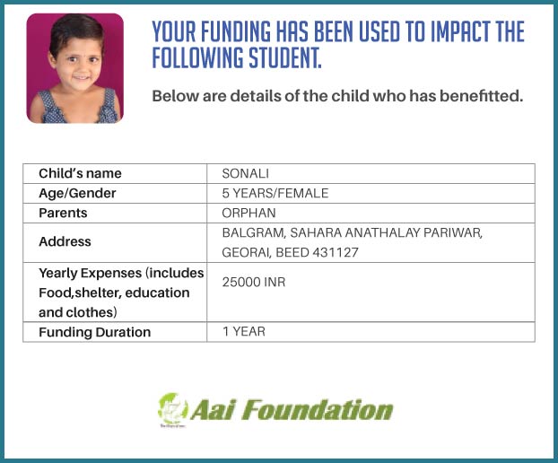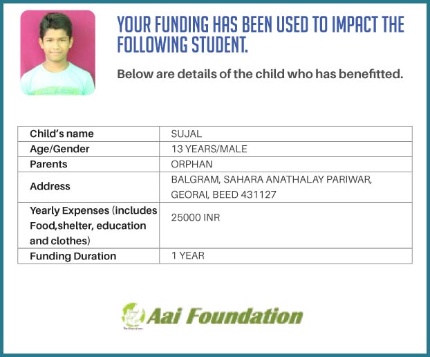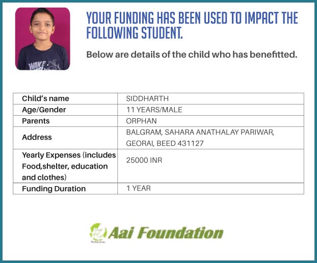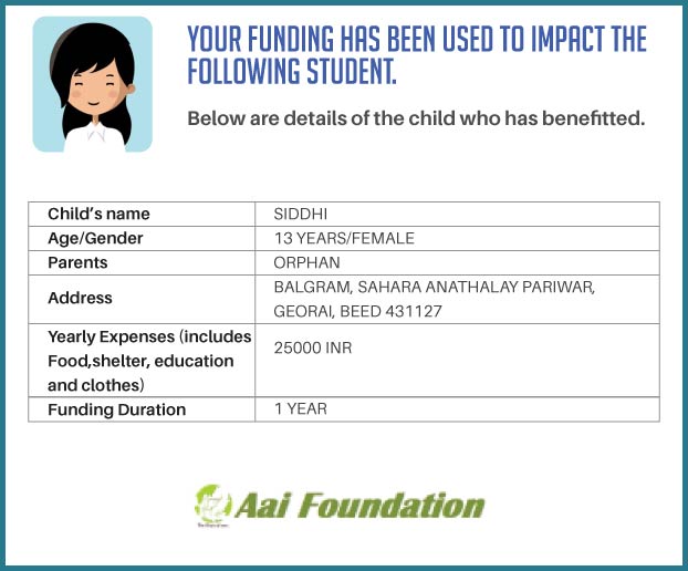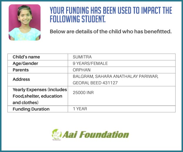The fact that just INR 2500 per month can make a difference in the life of a fellow student who is an orphan in a rural area made me realize that I must do something about it. Please support my campaign as we can together transform the lives of at least one and possibly more orphan children in rural Maharashtra.