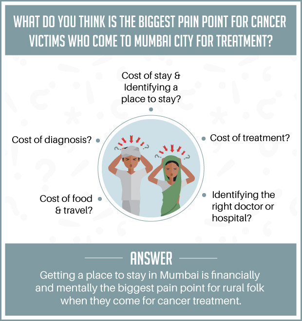 I have undertaken this campaign because I feel for all those families and patients who have to go through the difficult journey of cancer. Although there are several people and Organizations which sponsor the treatment of financially stressed patients, there are very few that help out with an issue that is equally important - "THEIR STAY".