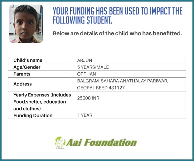 The fact that just INR 2500 per month can make a difference in the life of a fellow student who is an orphan in a rural area made me realise that I must do something about it. Please support my campaign as we can together transform the lives of at least one and possibly more orphan children in rural Maharashtra.