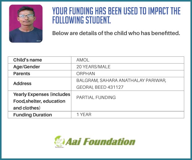 The fact that just INR 2500 per month can make a difference in the life of a fellow student who is an orphan in a rural area made me realise that I must do something about it. Please support my campaign as we can together transform the lives of at least one and possibly more orphan children in rural Maharashtra.