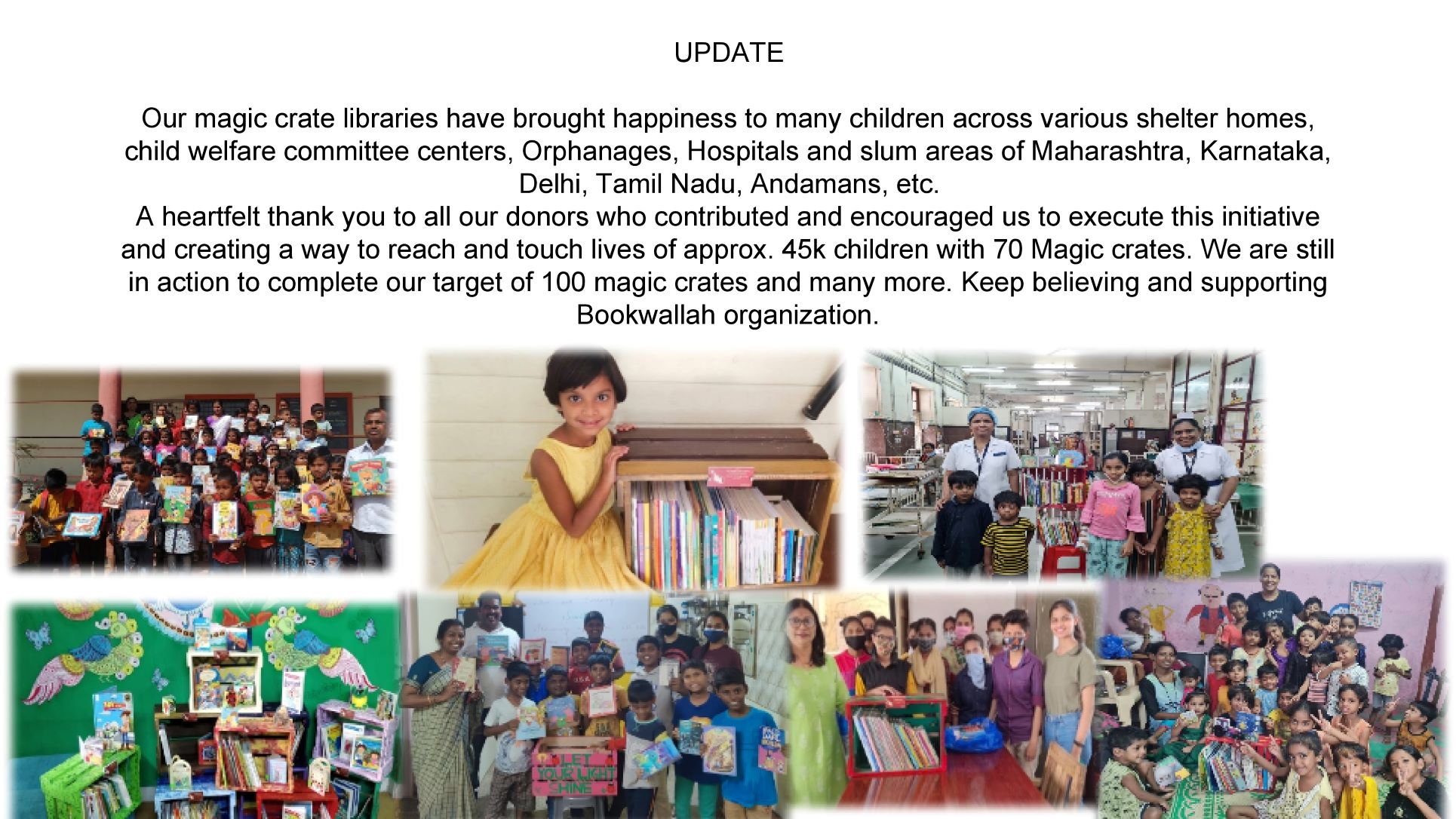 Through the "Be The Light" initiative by Bookwallah, Magic Crate Libraries will be distributed to Shelter Homes and Child Welfare Communities across the country. The aim is to provide these crates to 100 such shelter homes. These books will help heal, empower and transform these vulnerable children to rebuild their lives.