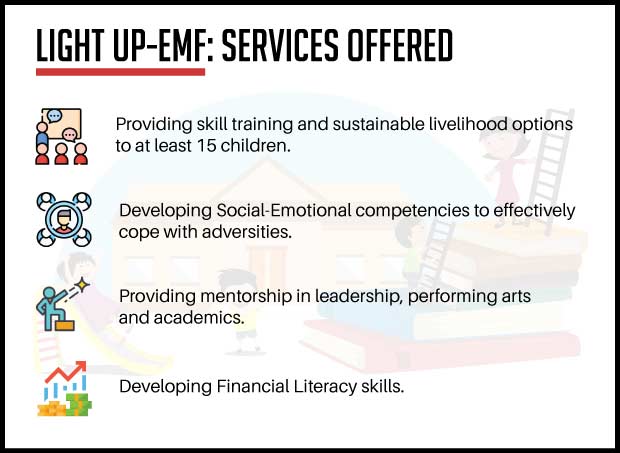 Light Up-Emotions Matter Foundation believes that in order to promote holistic development for a child, Social-Emotional Learning (SEL) needs to be inculcated in a systematic manner, along with adequate skill development to provide sustainable livelihood opportunities.