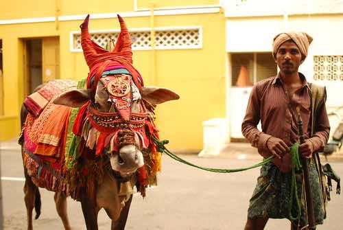 The nomadic tribe of Boom Boom Maatukarargal's are a group of people who made/make a living by travelling from place to place with a decorated bull, entertaining and fortune telling using what is generally termed a Boom Boom Maadu (Bull). One would have come across them singing, dancing and telling people’s fortunes as they pass through villages and towns. This is usually prevalent in T.N, Andhra, Telangana and Kerala.