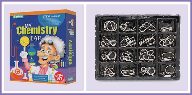 This game is an exciting brain teaser puzzles for kids to enjoy. This disentanglement puzzle provides for hours of entertainment. Included in this pack are a variety of different designs. In total, you get 16 pieces. It also helps the kids learn skills such as thinking and problem-solving.