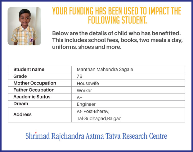 Shree Raj Educational Centre is a unit of Shrimad Rajchandra Aatma Tatva Research Centre. The Research Centre is established in 2004 at Parli (Maharashtra) and represents the coming together of individuals from diverse backgrounds and faiths who through common ground, aspire for inner evolution for Self and for the world around them. The Centre also operates numerous Social Service projects in the fields of Education, Health and Women Empowerment among others, across various cities and in its own little way is transforming the lives of less - privileged.