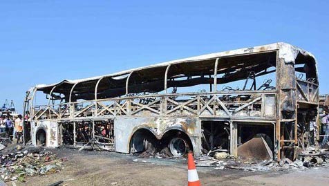 Pic: Here's the chilling aftermath of the Volvo bus that caught fire in the horrific accident. (For more information about the accident, please check the news articles below).