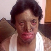 - There is gross disfigurement of the face. There is however some residual deformity of the eyelids with drooping /outward eversion, also deformity of both upper and lower lips with a loss of the lip seal ( resulting in drooling of saliva). Gross deformity of nose with loss of the natural covering skin, and grafted ares of the supporting structures of nose.