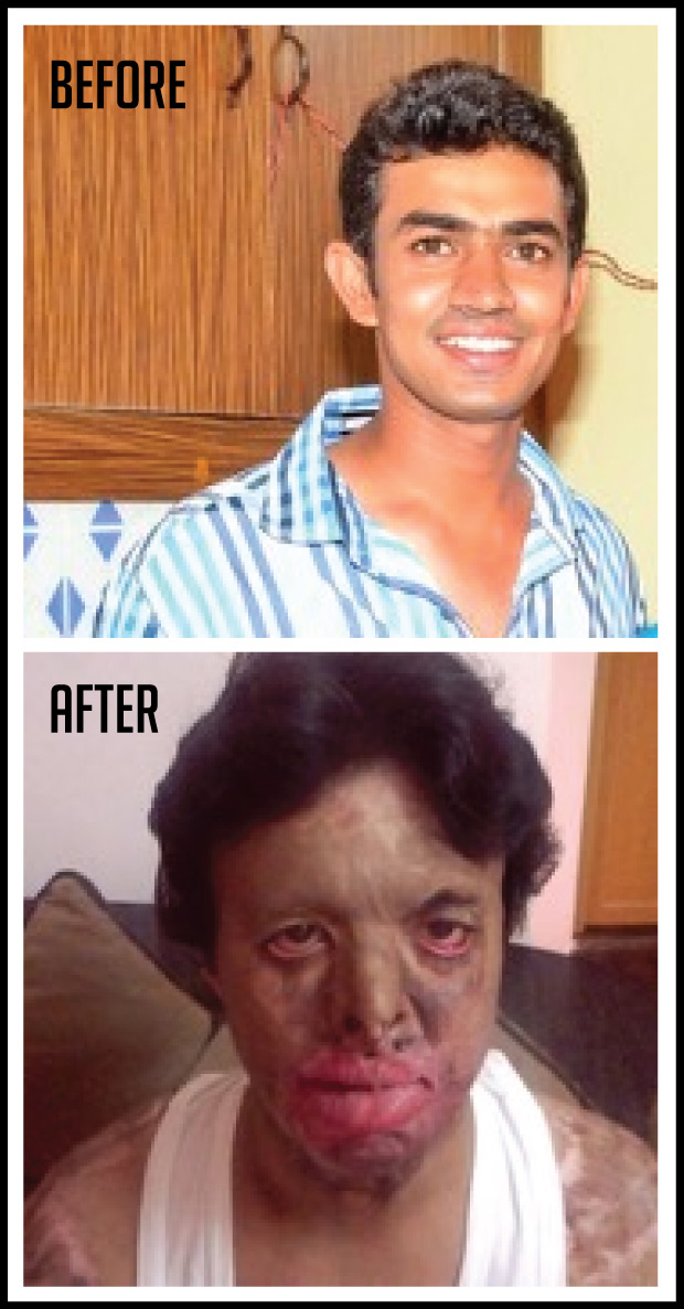 One day, there was a terrible accident on the road from Bangalore to Hyderabad. Yogesh was in it. He got badly hurt, with 45% burns. Doctors didn't know if he would make it, but Yogesh fought hard to survive. Now, he looks very different, and he lost eight fingers.